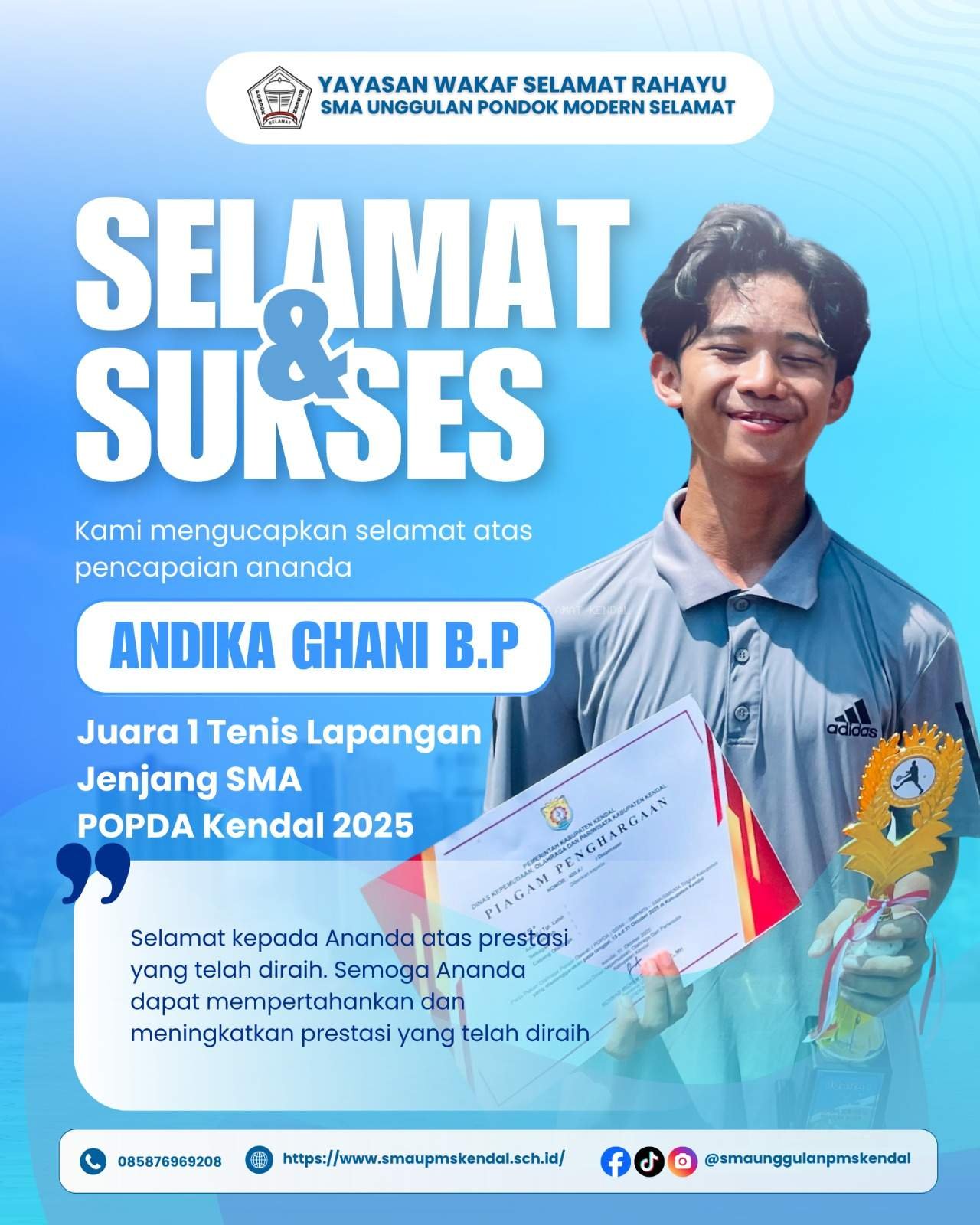 salah satu lembaga pendidikan, SMA Unggulan Pondok Modern Selamat akan berupaya